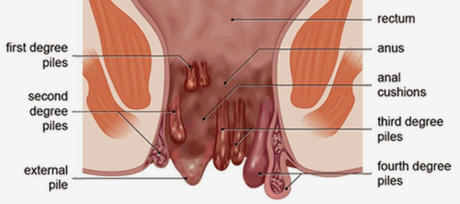 Haemorrhoides - commonly known as Piles - are swollen blood vessels (veins) which develop inside and/or outside the anus. They are felt as lumps around and inside the anus . The lumps are formed by increased pressure on blood vessels in the area, causing them to enlarge and swell. If they become infected, they can cause bleeding, pain and discomfort and require medical attention.